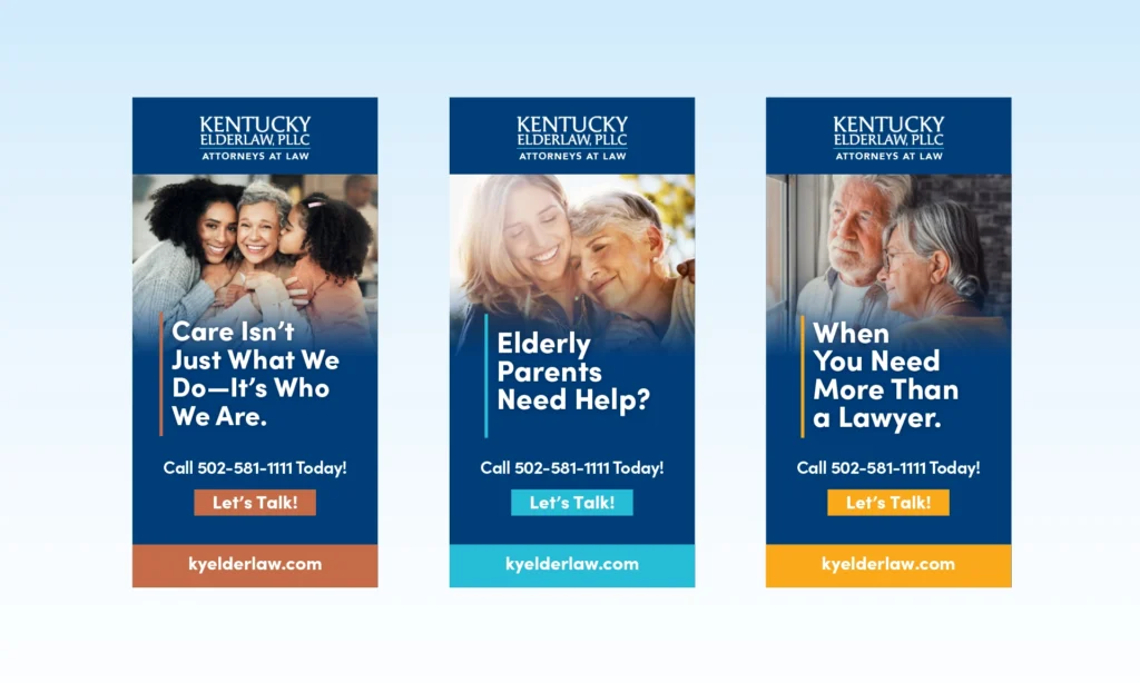 When your services are needed most, there’s no time for confusion. We rebranded Kentucky ElderLaw to speak directly to adult children and seniors alike—with messaging that’s clear, visuals that connect, and design that delivers peace of mind. We modernized the logo, simplified the typography, and introduced a calming, confident color palette. Visual hierarchy and real-life imagery brought empathy into every element.